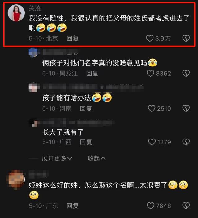 当然,还有不少网友也调侃他们对孩子起的姓名,关凌也曾回复,真的是经过认真考虑的,并且把父母姓氏全部加了进去。