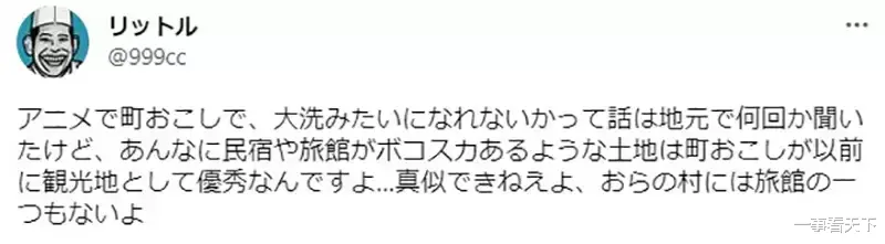 一位网友说道:“我们所在的地区,一直连一家旅馆都没有。如果没有基本的观光资源,即便有动漫的加成,也很难真正吸引游客啊。”