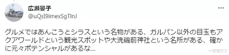 一些网友详细列出了其资源优势:鮟鱇鱼、吻仔鱼这些区域独特的美食、大洗矶前神社、大洗水族馆等本地景点,再加上商店街和餐饮业者的服务能力,所有这些都为大洗的观光成功打下了基础。