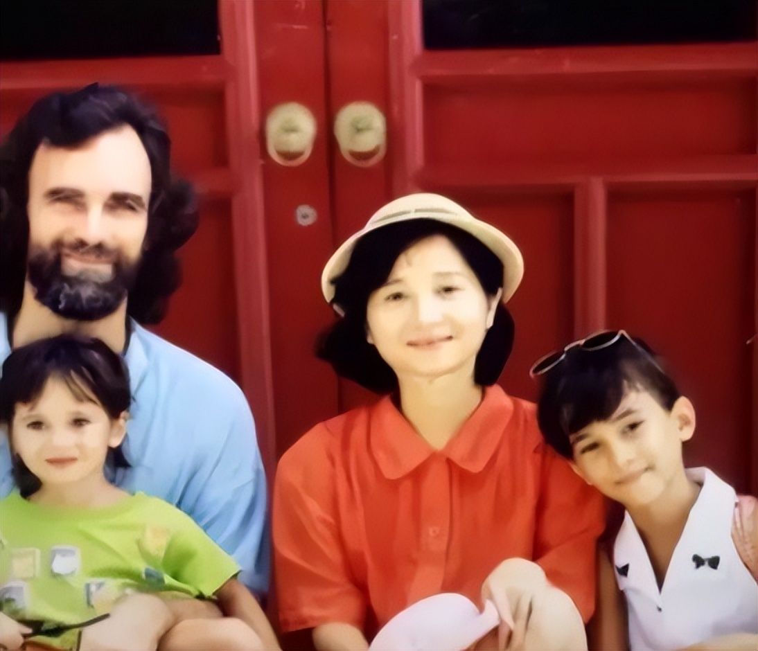 两人的女儿背对镜头看着弟弟,浓密的头发和肉嘟嘟的小手一看就很可爱,这一家子妥妥都是高颜值啊!