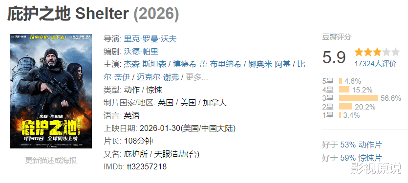 而《庇护之地》的票房表现之所以如此之差,主要还是在于它的质量不高,观众口碑很差,有近2万人为其打出了5.9的分数,堪称烂片之作。