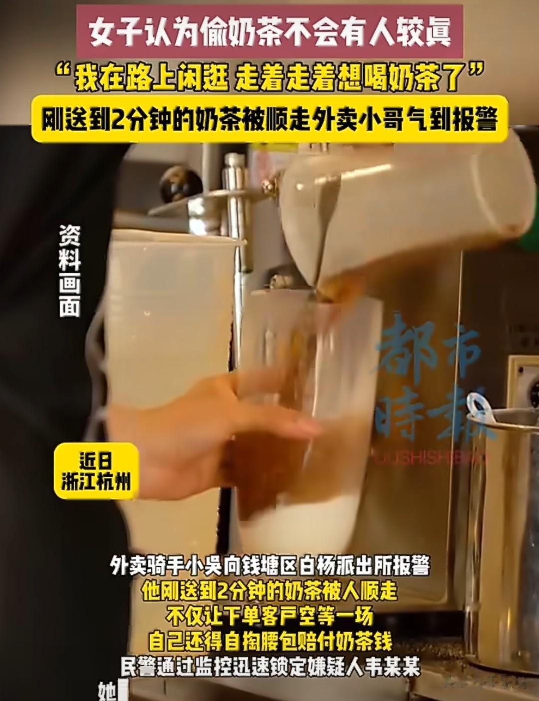 【一杯奶茶引发的风波!】外卖骑手送达仅2分钟的奶茶,竟在光天化日下被路人“顺手牵走”。偷窃者坦言:“以为没人会为杯奶茶较真”。警方快速破案后,一句“首违不罚”引发全网讨论——小事违法,究竟该严惩还是教育?
