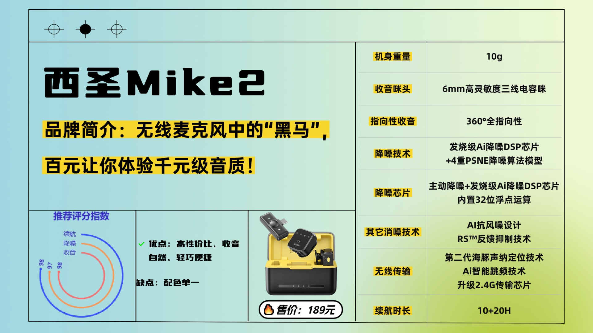 预算有限闭眼入——西圣Mike2领夹麦(¥189)