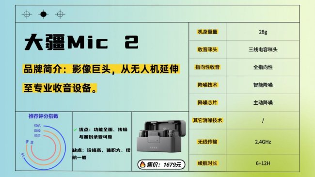 ①大疆Mic2领夹麦(¥1679)