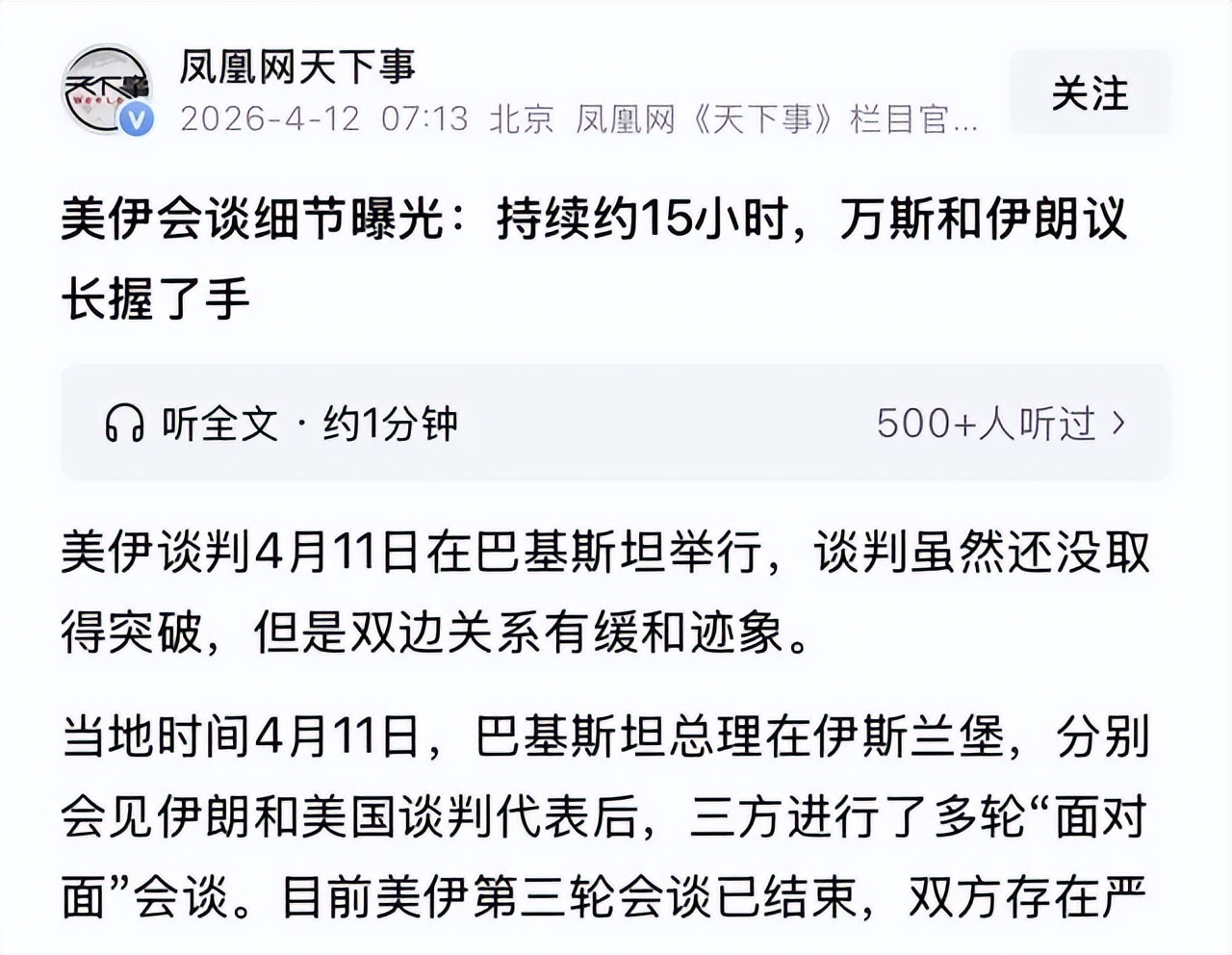 接下来的48小时是关键窗口。革命卫队代表团能不能在霍尔木兹问题上给出一个可以往下谈的框架,将决定这场谈判是载入史册的转折点,还是又一次高开低走的外交泡沫。47年的敌意不会因为一次握手消失,但至少在2026年4月的伊斯兰堡,两个互相诅咒了半个世纪的国家,第一次愿意看着对方的眼睛说话了。后面的路怎么走,整个中东都在盯着。