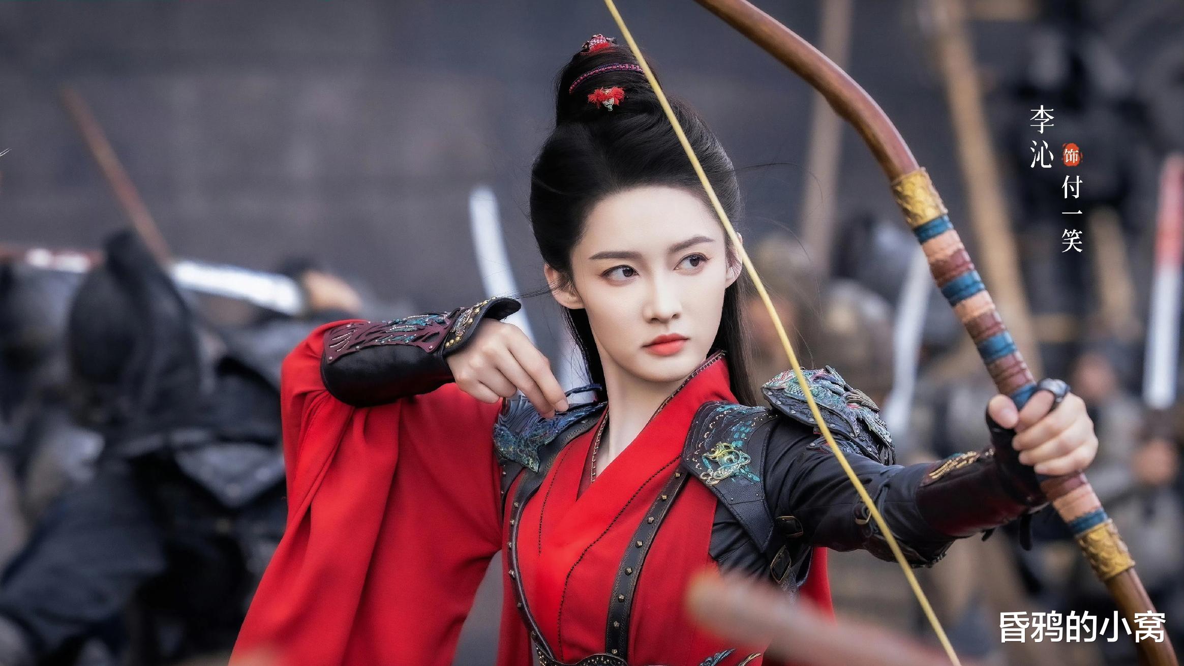 李沁饰演的付一笑以红衣射手造型惊艳出圈,清秀面容与挺拔身姿形成强烈反差,挽弓时的肩背线条展现出常年习武的力量感,即便身形纤细,也难掩眼神中的杀伐之气。