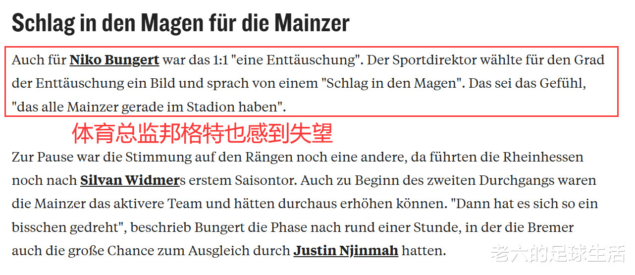 体育总监尼科·邦尼特比喻这种感觉就像腹部挨了一拳,这是每个美因茨球迷此刻在球场上的感受。