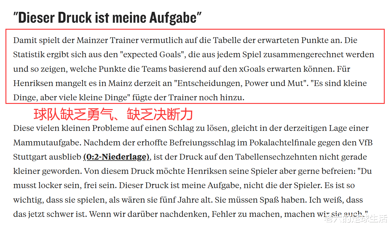 美因茨这边最近的表现让主教练亨里克森是忍无可忍,球队现在存在许多的小问题,他们缺乏决断力缺乏力量缺乏勇气。