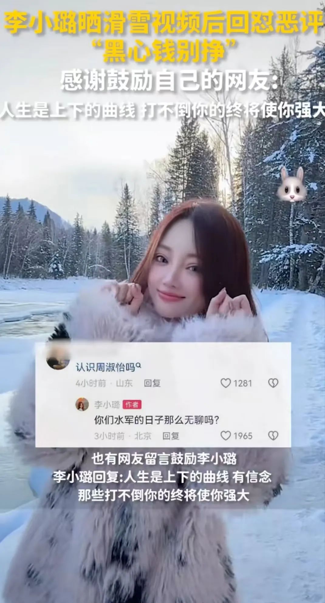 发就发了,也没啥流量,或者没啥好的流量,不过呢还真被一众吃瓜群众发现了,李小璐发这个滑雪视频,很可能啊要曝光自己,说不定流量起来了还直播带货呢。