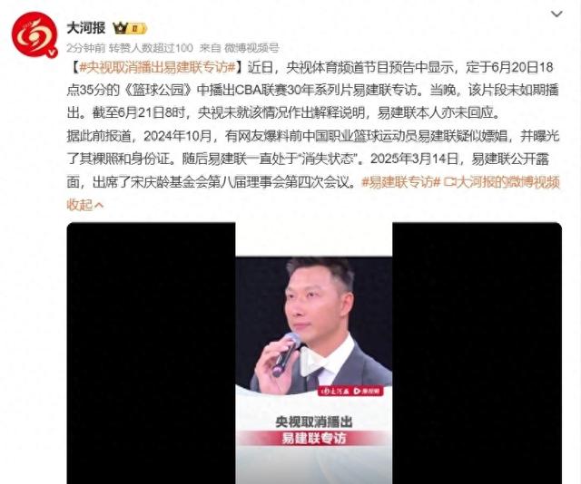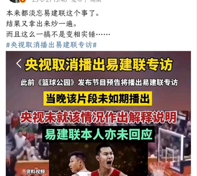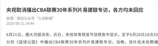 原本央视要在《篮球公园》6月20号播放易建联的专访节目。