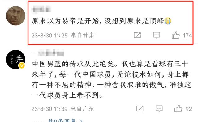 “以为易建联是男篮的开始,没想到原来是顶峰。”