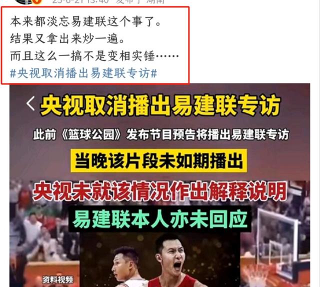 网上关于央视取消专访的事件讨论,又回到了去年易建联的丑闻上。