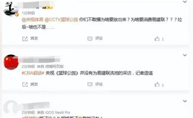 “央视不会邀请有争议的人物”、“看来易建联很难翻身了”。