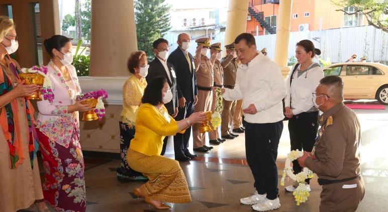 根据泰国媒体报道,玛哈国王带着苏提达和思蕊梵,一起现身皇家陵园,为普密蓬国王送上花圈。泰国帝后从都喜宫出发,乘坐皇家御车来到Chaloem Phrakiat 公园,一起祭拜普密蓬国王。