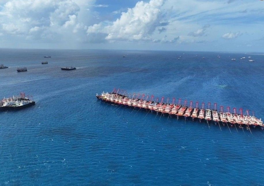 该报告声称,通过分析自动识别系统-数据、解放军海军演习区坐标及全球渔业观察数据,从2024年可能与演习重合的日子在台湾附近航行的约12,000艘船只中,筛选出315艘悬挂中国国旗的渔船,并进一步标记128艘为所谓“灰色地带行为者”。