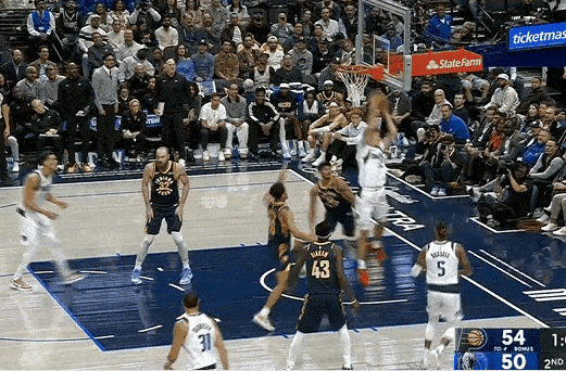 今日NBA常规赛,独行侠主场对阵步行者。比赛第二节,弗拉格积极拼下进攻篮板,可惜转身放篮被胡夫大帽。