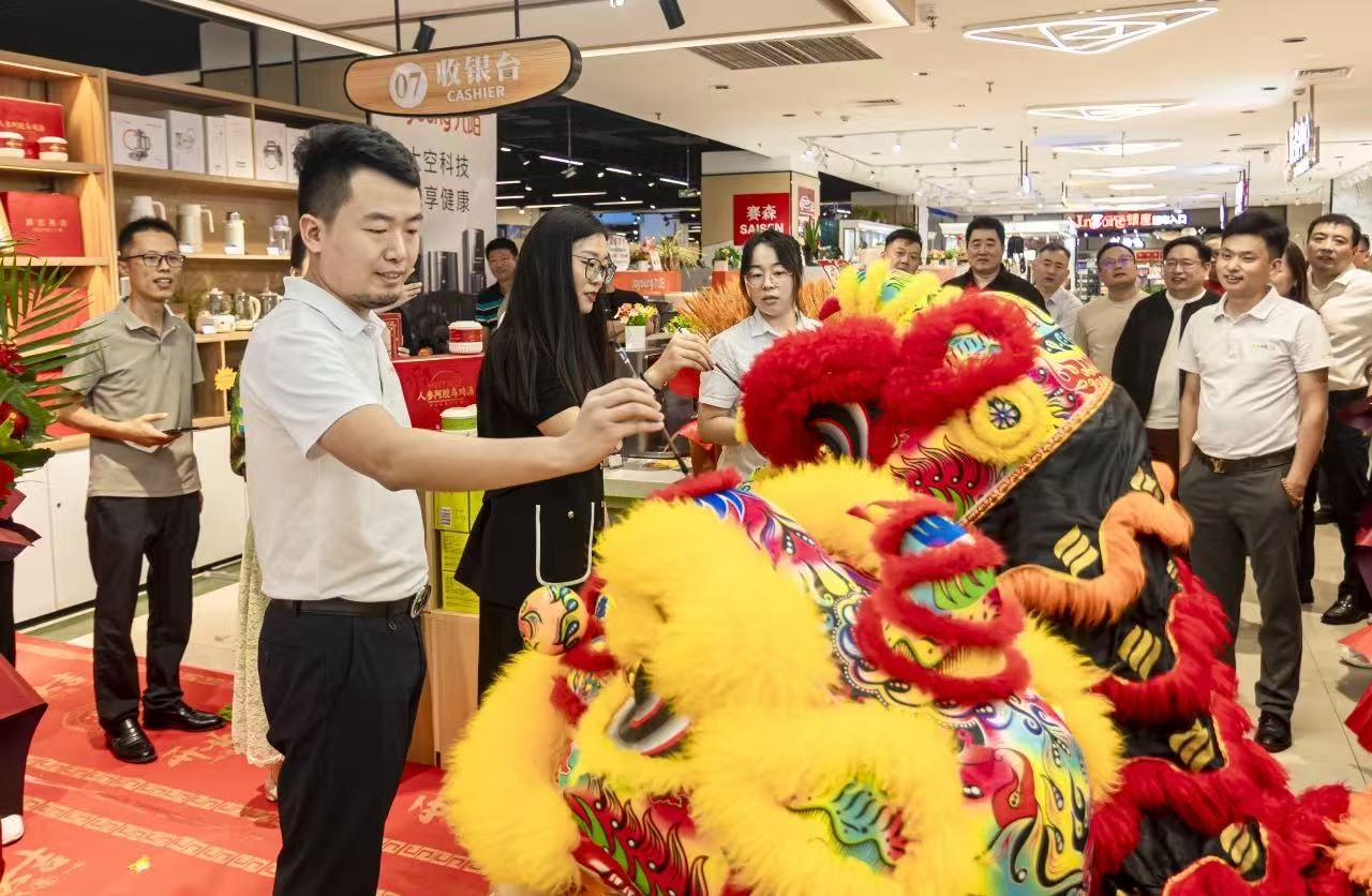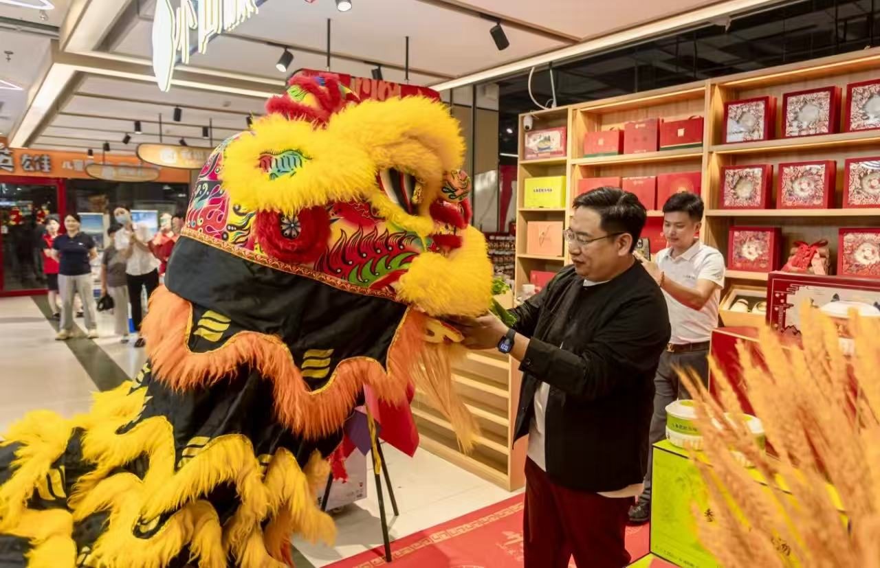 开业庆典在极具中华传统文化色彩的醒狮表演中拉开帷幕。锣鼓铿锵,声声震天,寓意“黄金万两”;祥狮欢舞,神采奕奕。活动的首个高潮——“醒狮采青”环节随即上演,“瑞狮采青”素有瑞气临门、生财有道、步步高升之美意。聊城主理人高总与上海运营负责人邓总协同接“青”,成功接续来自品牌的福运与财运,现场掌声雷动,预示着新店未来的兴旺繁荣。