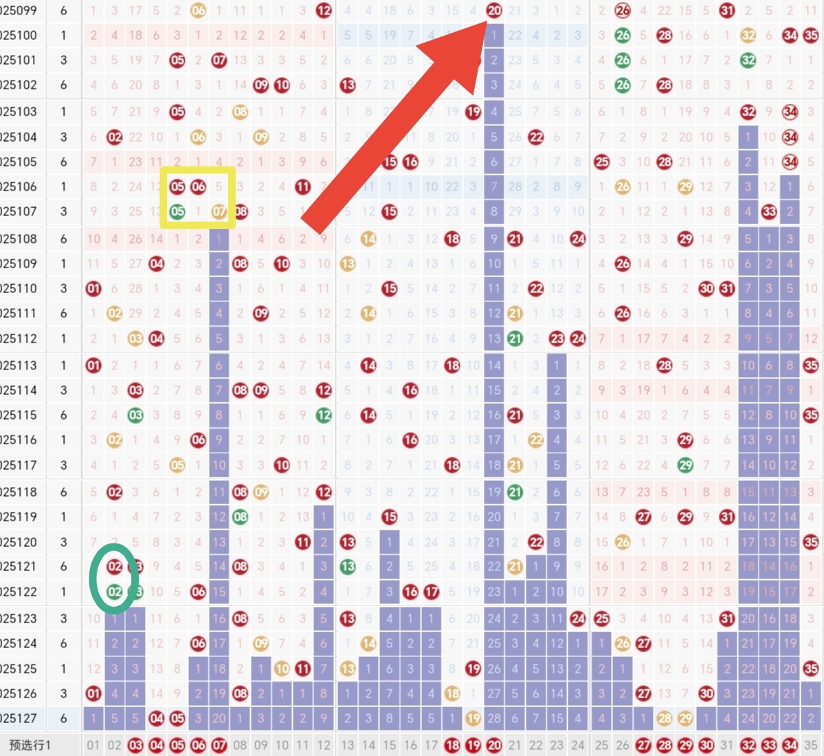 遗漏:自上次开出到当前期所间隔的期数。(例如:前区20号上次开出时间2025年第99期,当前开出2025年第127期,127-99=遗漏28。)