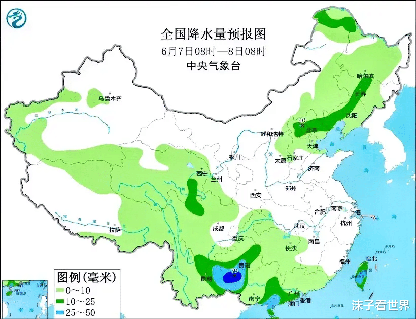 据中央气象台预测,6月7号8时至8号8时,暴雨主要集中在贵州西南部、云南东南部和广西西北部等地,累计雨量可达70毫米。其他降雨地区以中到大雨为主,分布在内蒙古东北部、东北地区西部、青海南部、华北北部、川西高原北部、西南地区南部、华南北部和南部以及台湾岛等地的部分地区。