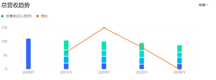 2021年以来,九阳股份业绩开始走下坡路。2021年-2024年,九阳股份营收分别为105.4亿元、101.77亿元、96.13亿元和88.49亿元,分别同比下滑6.09%、3.45%、5.54%、7.94%;归母净利润分别为7.46亿元、5.30亿元、3.89亿元和1.22亿元,分别同比下滑20.69%、28.93%、26.58%、58.55%。九阳股份的股价也一路下滑,截止11月17日收盘,股价为11.57元每股,市值88.27亿左右,较巅峰时期跌去超70%。