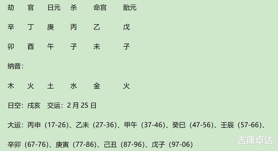 富察氏九柱法八字(1712年3月28日巳时):