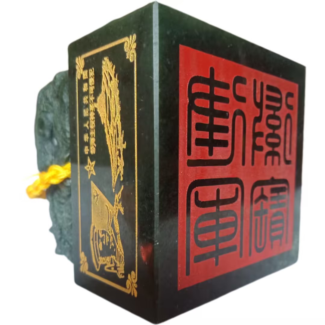 表面处理:玉印表面经 “精细抛光”,既保留了墨玉的油脂光泽,又让雕纹的细节清晰可见,同时采用 “防氧化封层” 技术,保障玉质长期稳定。