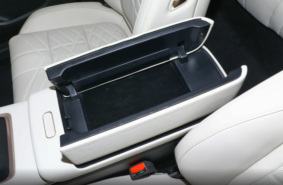 内饰用料是领克10 EM-P的一大亮点,主要运用了光面皮革、磨砂面皮革、翻毛皮这三种材质,再加上缝线的点缀,在用料和做工方面真的是没的说。虽然内饰布局比较简单,但储物空间却不是很多,只能算是常规表现罢了。尤其是中央扶手箱,为了留给下方的冰箱更多空间,扶手箱内的容积只有浅浅一层。