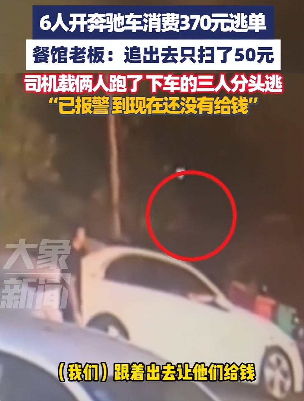 余先生撒腿就追,拦在奔驰车旁好说歹说,对方才磨磨蹭蹭地扫了 50 元。