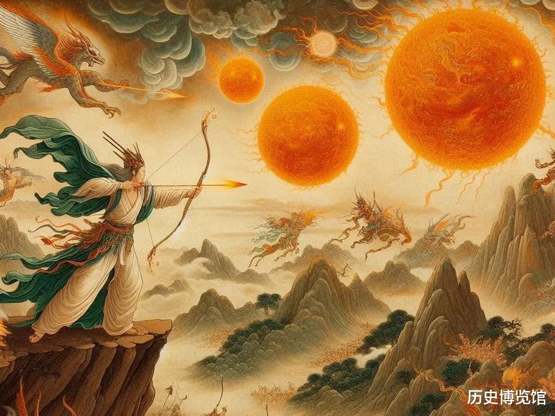 史籍所载的"后羿射日",在两千余年的传诵中早已固化为神话叙事。