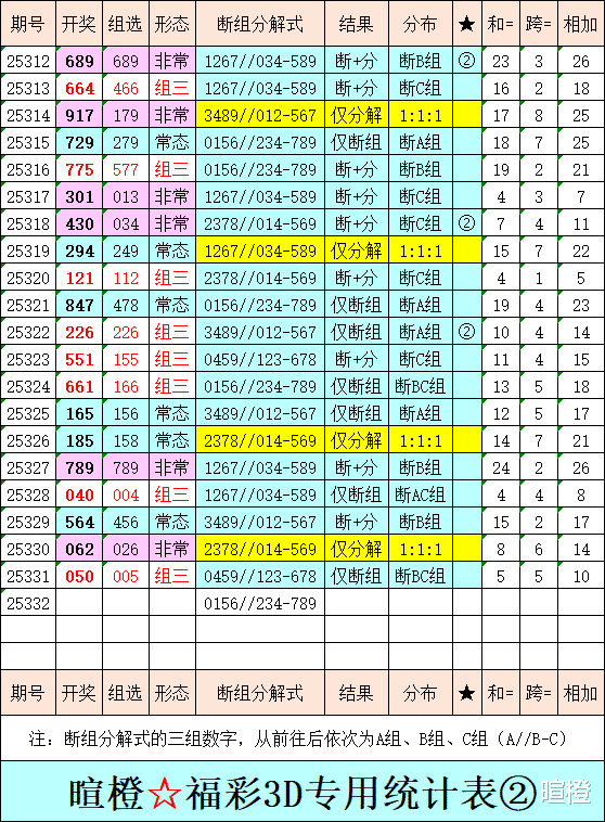 25332期:暄橙福彩3D综合条件(本期超时,仅统计)(本期将在12月12日21:15开)一、上期回顾 ☆1、上期开奖号