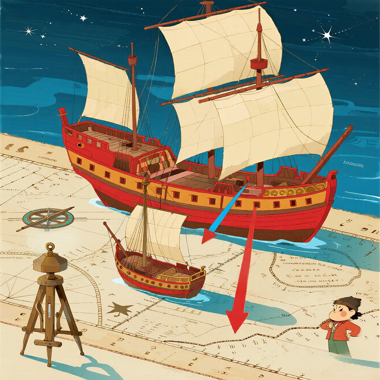 ⚓欧洲首支美洲舰队(1492年):3艘帆船、90人、旗舰“圣玛利亚号”仅100吨,依赖改良自阿拉伯的横纵帆混合设计,航行中频繁出现船员坏血病