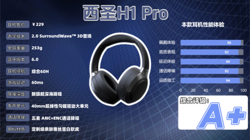 西圣H1Pro被公认为百元价位只有千元级别才有的音质听感,其声音表现被广大用户誉为目前同价位中最出色的选择。该耳机采用了2.0 SurroundWave™ 3D音场技术,能够实现超过270°的声场宽度,使音乐更加立体逼真。内置40mm超线性匀磁驱动大单元,配合双磁路双腔体和 N52 级高强度磁铁,每个音符都能得到精准展现,将最舒适度最好的音质呈现出来。不少专业测评师实测后,直接评价这款是真正把旗舰音质拉进百元档的代表。