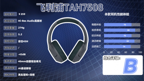 200元头戴式蓝牙耳机推荐哪款?这款耳机搭载了蓝牙5.2技术,连接稳定且延迟控制良好,支持多点连接功能,可在手机与电脑间无缝切换。音质方面,40mm动圈单元配合Hi-Res认证,声音细节丰富,低频下潜深沉,尤其适合摇滚与电子乐,但仅支持SBC基础编解码,传输带宽有限。其主动降噪性能强劲(-43dB深度),能应对多数通勤与办公噪音,环境声模式也便于临时交流,不过耳罩的物理隔音效果对高频噪音隔绝不足。约274克的机身采用轻量化设计,头梁支持多级调节,但蛋白皮耳罩在夏季长时间使用后透气性一般,易积汗。续航方面,单次充电支持45小时(开降噪)至60小时(关降噪)播放,配备Type-C接口与折叠结构,兼顾实用性与便携性,但机身塑料感较强,细节做工有提升空间。