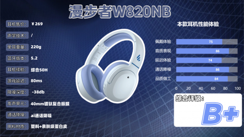 200元头戴式蓝牙耳机推荐哪款?这款耳机蓝牙5.3芯片保障了日常连接的稳定与低延迟;约246g的机身配以蛋白皮耳罩和记忆棉,佩戴舒适包裹性好;混合主动降噪(38dB深度) 有效应对通勤和办公常见噪音,且可切换环境声模式;音质则依靠40mm动圈单元,调校均衡,人声和低频表现突出,但高频细节和解析力尚有提升空间。其续航能力强劲,关降噪80小时、开降噪70小时,配备USB-C充电口和3.5mm有线接口,支持折叠收纳。需要注意的是,它无法同时连接两台蓝牙设备,切换需手动,且机身的塑料感和折叠结构的长期耐用性是潜在考量点。