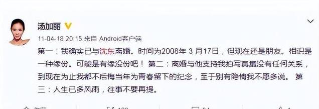 汤加丽否认了分手是因为写真引发的传言,她强调两人分手是和平的,离婚跟写真没有关系,只是有其他原因,但她没有详细说明。