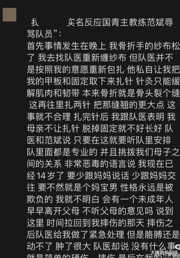 13年后,又是范斌,又是国青队球员,爆出了他辱骂球员的情况,而且还爆料国青队的队医乱医治并隐瞒伤病。