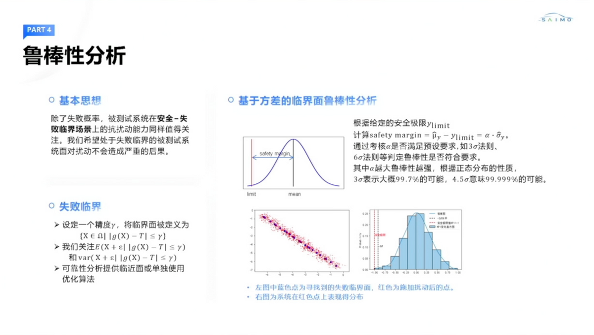 在可靠性分析中,其核心目标是通过实验设计识别整个测试空间中可能存在的失效临界区域。进一步地,可针对这些临界区域开展鲁棒性分析,评估被测系统安全极限是否能够达到3 Sigma或6 Sigma。若被测系统安全极限满足上述要求,则可认定被测系统具有较高的鲁棒性。