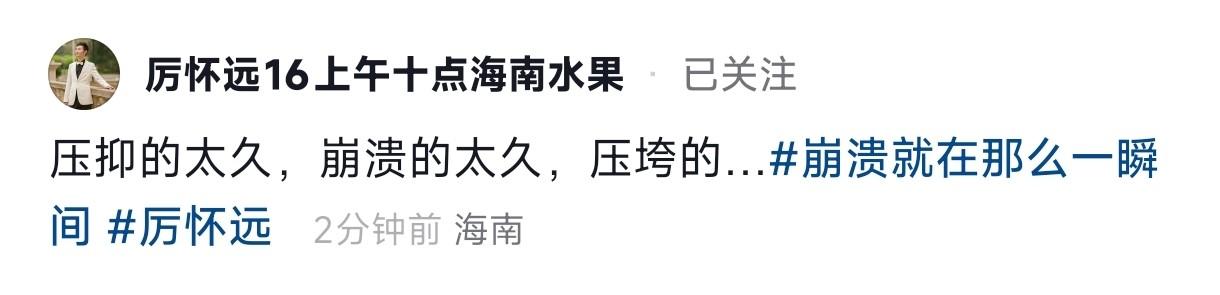 很快,厉怀远回应了,他说冰冻三尺非一日之寒,自己的委屈只有自己知道,自己实在是被打压的透不过气来,常常处于崩溃的边缘......