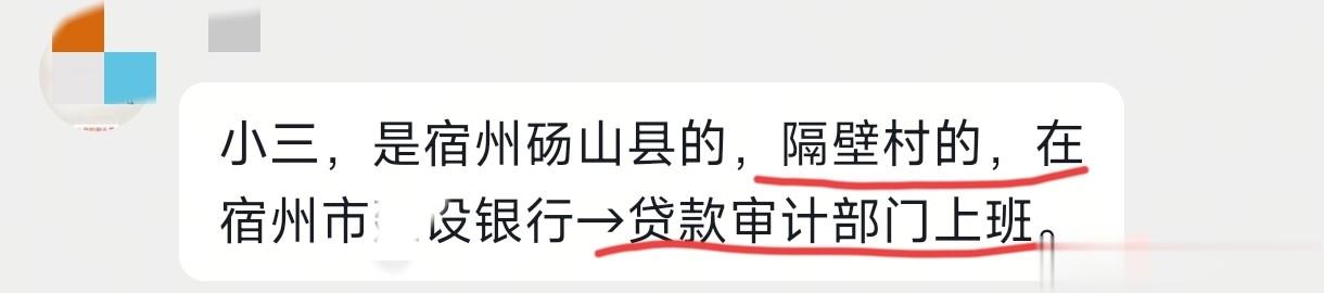 疑三姐工作曝光。在厉爸群里,有知情者曝光了三姐的工作单位的职务,是隔壁村的,在当地某银行工作,负责贷款审计。