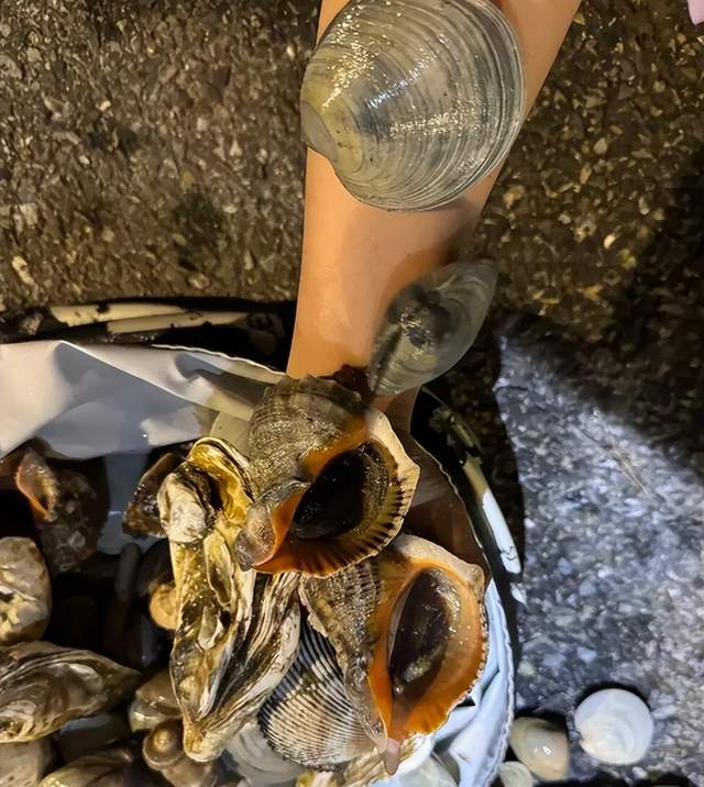 夜幕下,蜿蜒的海滩上闪烁着星星点点的头灯,宛如一条流动的星河。赶海的人们弯腰俯首,在沙滩上寻觅着大自然馈赠的珍品。"两个小时就捡了六十多斤,这样的经历真是难得一见。"市民韦女士难掩兴奋之情,"海滩上到处都是拳头大的海螺、肥美的猫眼螺,还有密密麻麻的海蛎子。"