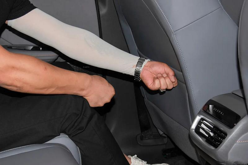 而且得益于CTV车身电池一体化技术,实际的得房率还是很不错的,尤其是后排腿部空间很宽敞,即便是身高1米8的男性用户,坐在后排,腿部空间也有接近三拳的空间,能轻松翘起二郎腿。