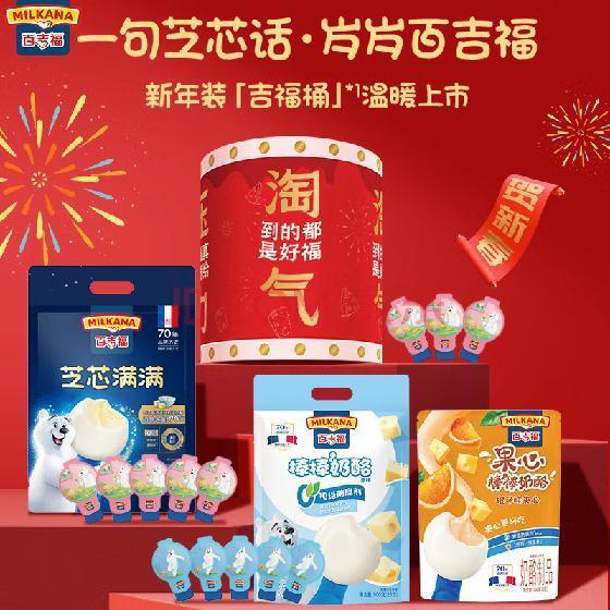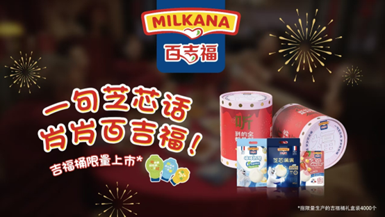 活动推出新年限定礼包内的产品上印有充满创意的祝福话语,猛一看是年轻人、孩子避之不及的话题,如“对象”、“考试”,可细看全句,则是“对未来要充满想象”、“考出最好吃的芝试”这些非常暖心的祝福。礼包的桶身,还可以在新年聚会时用来玩“击鼓传花”游戏,全家共享快乐的同时,同享营养美味。