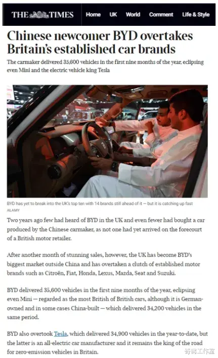 《泰晤士报》:中国新晋品牌比亚迪超越英国老牌汽车品牌