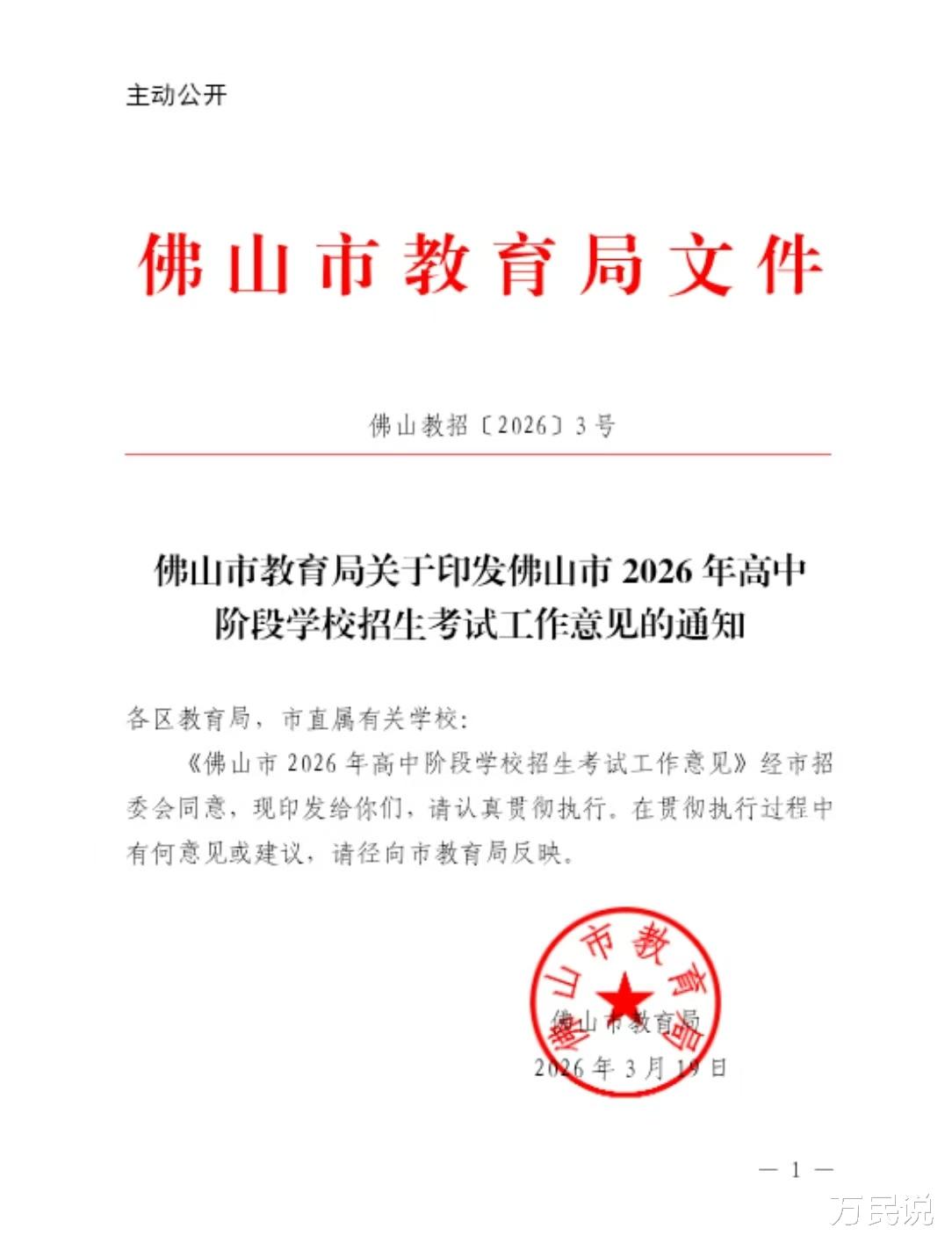 3月19日,《佛山市2026年高中阶段学校招生考试工作意见》正式下发。短短三天,全网好评如潮,尤其是佛山的家长和学校,更是毫不吝啬地送上赞誉。说实话,在各地中招政策频繁调整、家长焦虑情绪普遍高企的当下,能让本地老百姓齐刷刷点赞,这本身就不容易。更难得的是,这份文件还引发了全国范围内的关注——人们惊讶地发现,原来一个地级市的中考改革,可以做到这样“主动公开、接受检验”,而且改得如此有诚意。