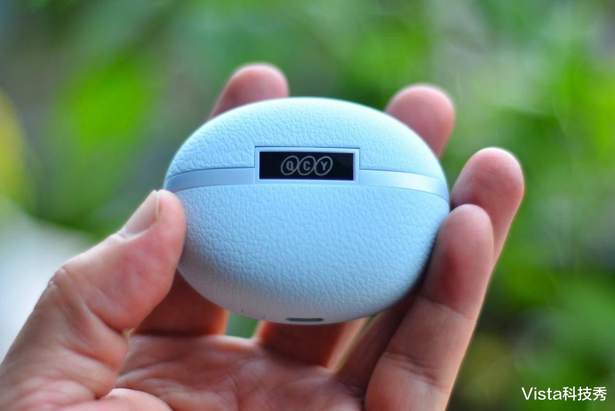 QCY C50本次共推出五款精致的低饱和色系配色,莫奈紫、芭蕾粉、冰海蓝、奶昔白、学院灰,每一款都呈现清新轻奢感觉,我入手的这款为冰海蓝配色,圆润椭圆设计,荔枝皮纹加上金属镶边,妥妥的高颜值,手感舒适防滑还不易沾染指纹。