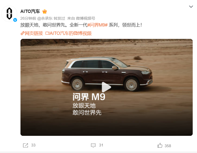 PChome 4月13日消息,今日,AITO汽车正式官宣全新一代问界M9,其首搭六激光雷达与全主动悬架,展示车身尺寸、动力系统全面升级。