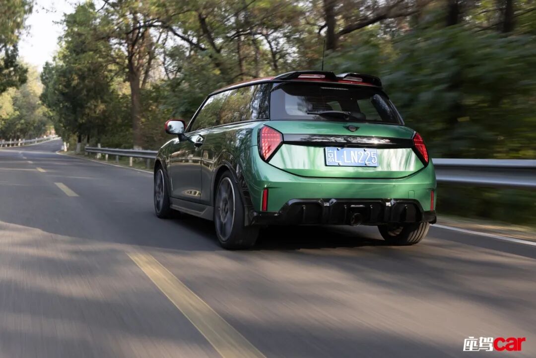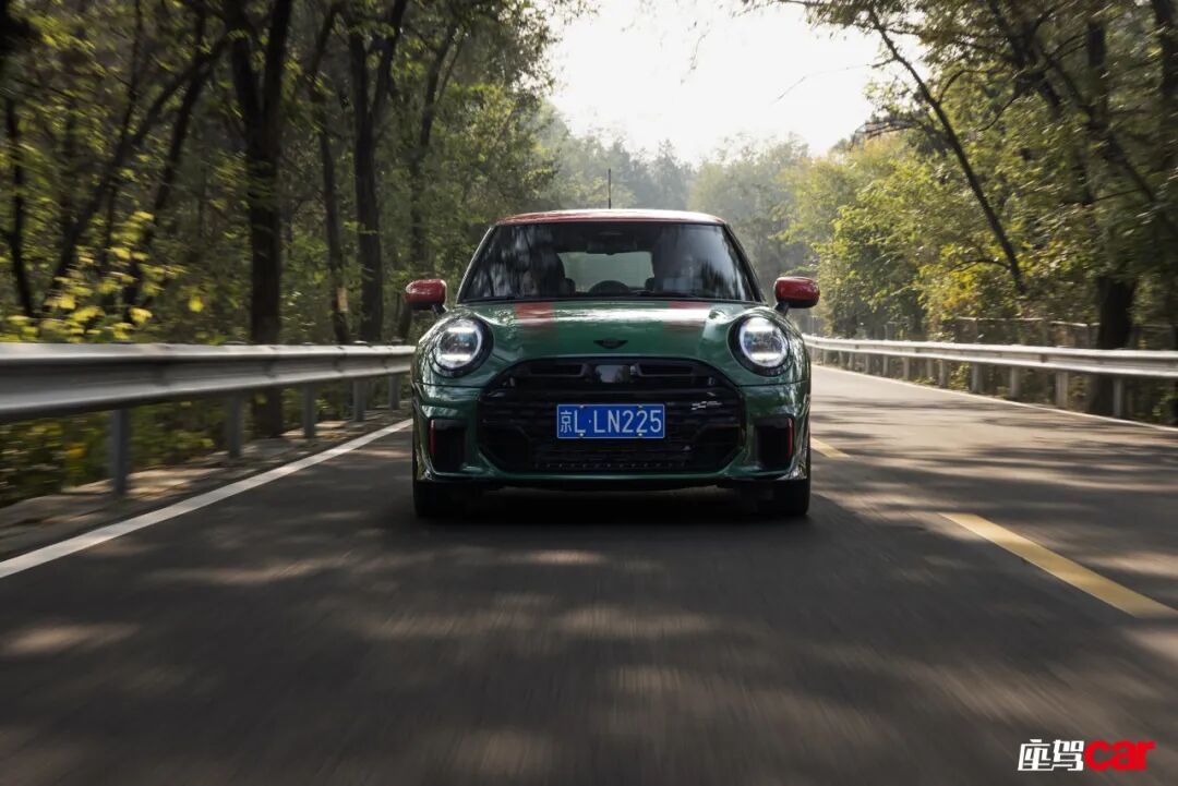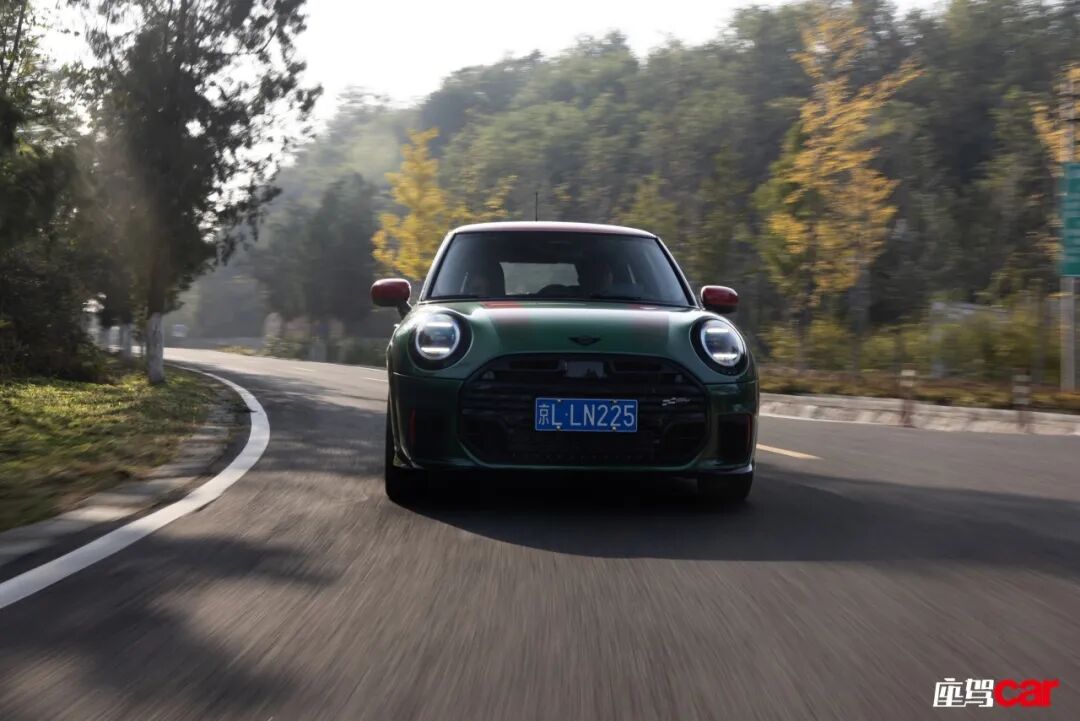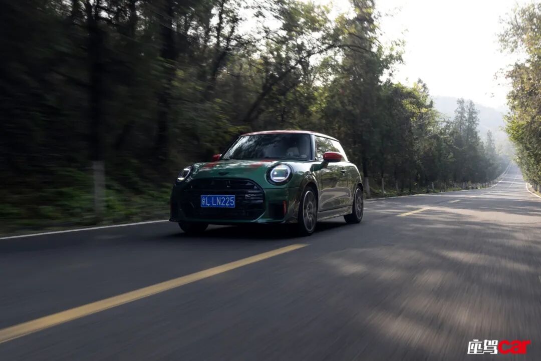 而当我在一段较长的直线上深踩油门,新款JCW的加速同样令人惊喜。6.4秒破百不是绝对疯狂的数据,但在紧凑的车身与低坐姿下,它呈现出的速度感是纯粹而浓烈的。风声被收得很干净,而发动机在中段的拉扯感比F56更饱满、更坚韧,像是一直有力量储存在体内,只等你再深踩一点就能喷薄而出。