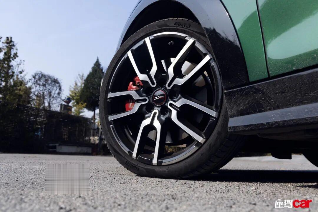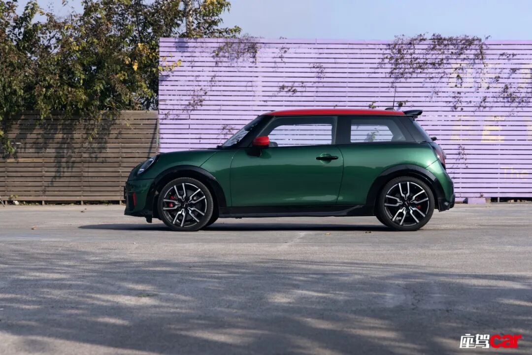 但让我真正心动的是细节。JCW专属的圈形双色18寸轮圈、鲜红色刹车卡钳、隐藏式中置双出排气,加上车尾那块JCW风刀尾翼——每一处都精准指出“这不是普通的 MINI”。而当我把手指轻轻抚过车身腰线时,我忽然意识到:经典MINI的比例从未改变。短前后悬、紧凑三门、四轮四角的架构依然纯粹。设计时代变了,但MINI精神没有变,仿佛这套骨架历经几十年仍是那副熟悉的姿态,只是在新时代的肌肉上雕刻得更加利落。