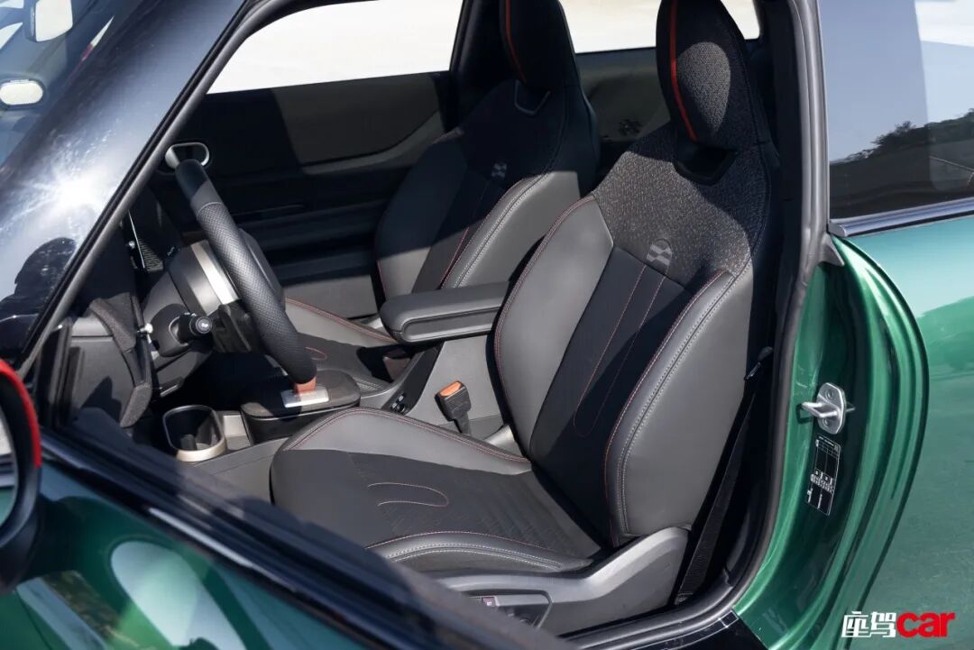 座椅是我刚坐上去就深深感激的部分。比F56更包裹、更硬朗的一体式JCW运动座椅,提供了电调、加热甚至按摩功能。这在当年的JCW是想都不敢想的奢侈。腰部支撑精准到位,侧翼位置紧紧锁住身体,让我在第一次弯道前就隐约感受到这台车不只是为了速度而生,更是为了操控。