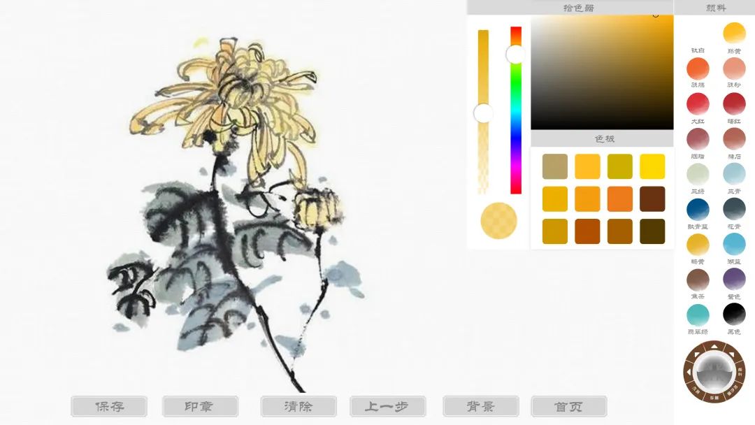 饱蘸“浓墨”,挥笔抒毫,18种常用国画颜色,用户可直接在屏幕进行自由绘画,可调节笔墨色彩浓淡,模拟真实水墨晕染效果。